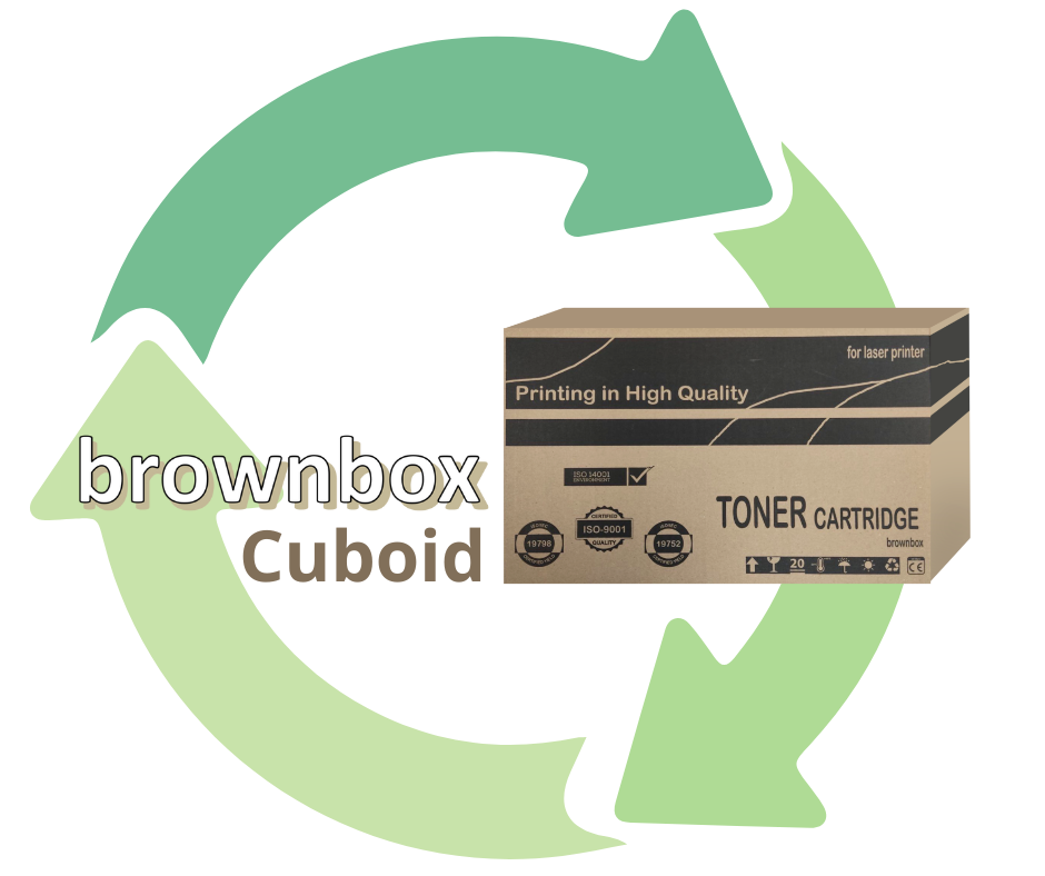 Cilj programa brownbox Cuboid je osigurati da svaki potrošeni tonerski ili tintni uložak bude pravilno obrađen, ponovno upotrijebljen ili recikliran, što kao rezultat daje manje otpada.